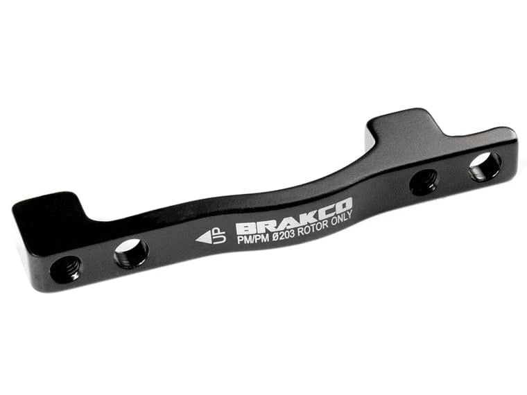 Este adaptador sirve para montar una pinza de freno con sistema Post-Mount (PM) en una horquilla o cuadro con anclajes PM, permitiendo instalar un rotor de 203 mm en lugar del rotor estándar de 160 mm. Está fabricado en aluminio forjado y se suministra junto con tornillos y arandelas específicos.